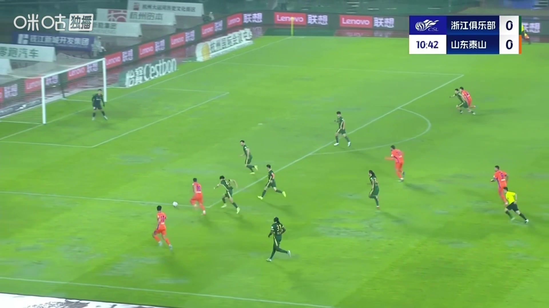 王大雷无可奈何奥乌苏转身小角度爆射破门浙江队反超比分